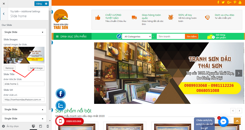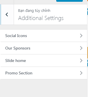 Bước 2: Hệ thống sẽ hiển thị ra trang Tùy chỉnh. Bạn chọn Additional Settings hoặc các nút cạnh logo/ slide để chọn chỉnh sửa slide, logo