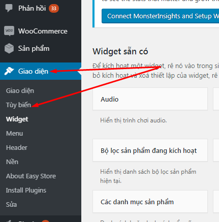 Bước 1: Truy cập trang quản trị, click vào Giao diện/ Tùy biến