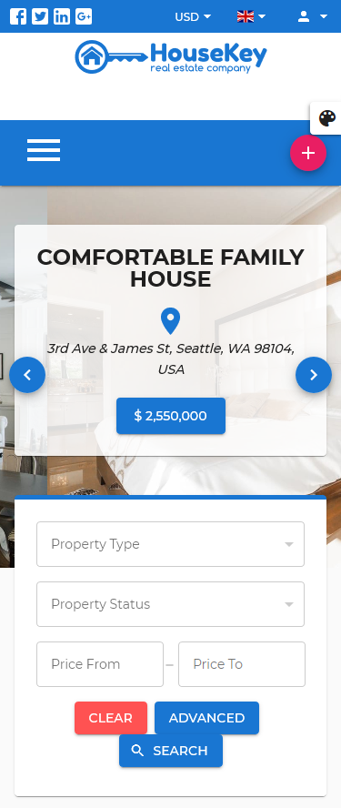 HouseKey is a powerful and creative material design real estate template. it’s really easy to maintain. The template is fully responsive and clean on every device and on every modern browser. The code is super easy to understand and gives power to any developer to turn this template into real web site.