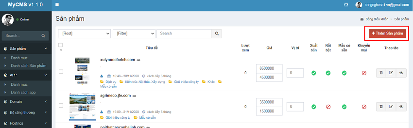 Bước 1: Tại trang quản trị website, truy cập vào Sản phẩm và chọn Danh sách sản phẩm