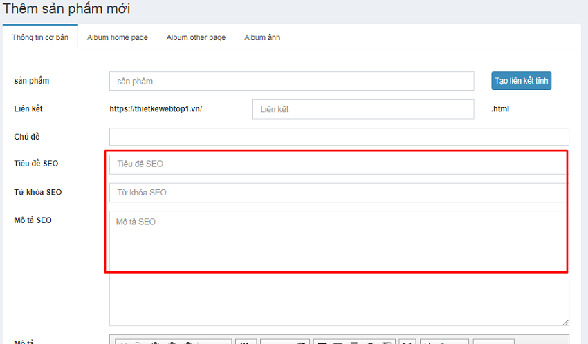 Nhập thẻ tiêu đề, thẻ mô tả và chỉnh sửa đường dẫn/Alias sau đó xem trước kết quả sẽ hiển thị trên Google khi tìm kiếm.