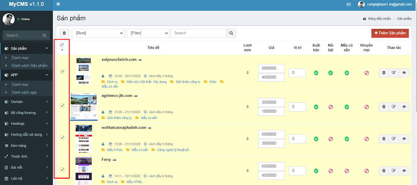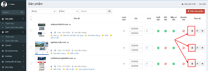 Bạn cũng có thể thực hiện thao tác xóa nhiều sản phẩm trong cùng 1 thời điểm.