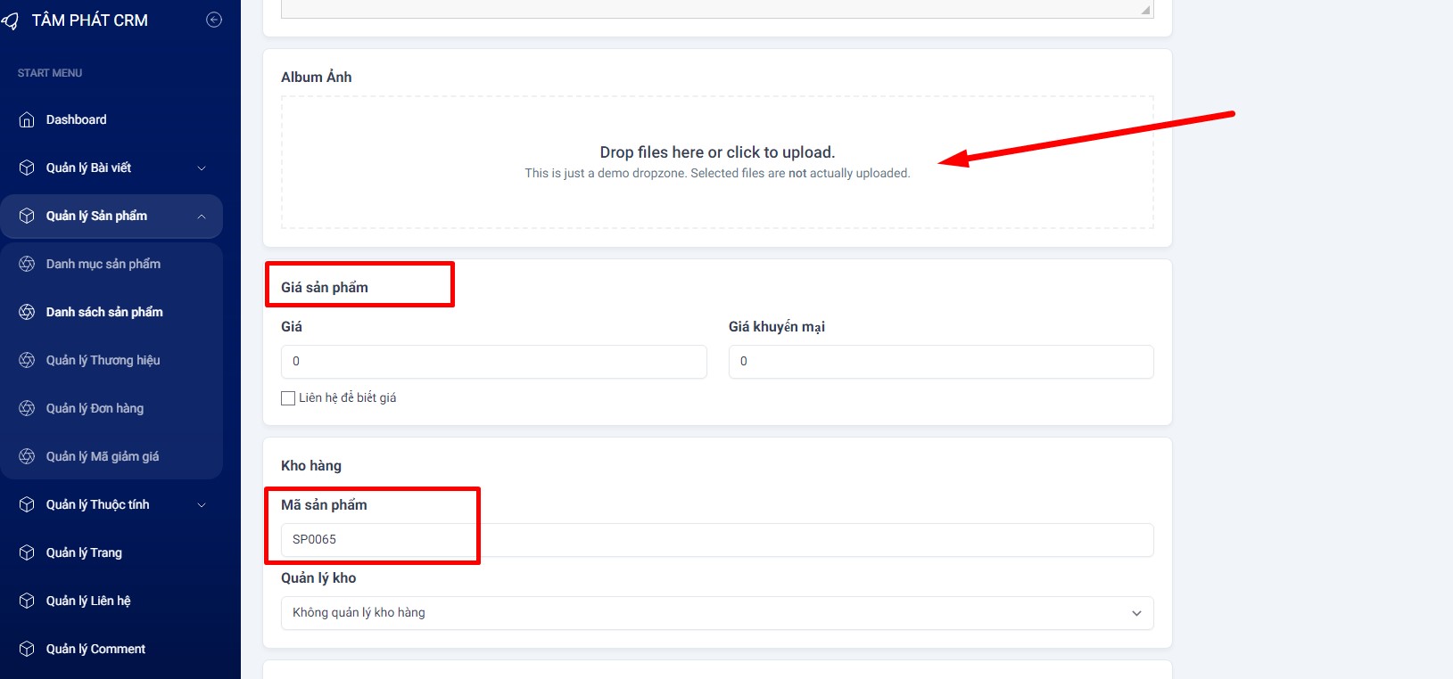 Để thêm một sản phẩm mới, hãy thực hiện các bước sau: