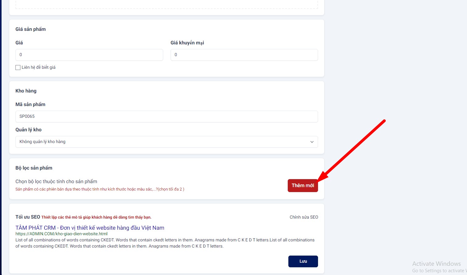 Bước 6: Chọn Lưu để thêm sản phẩm mới
