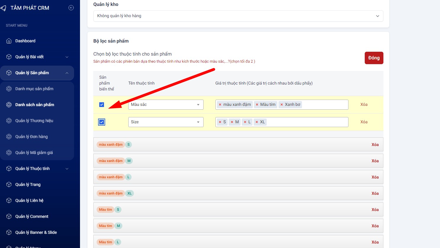Bước 1: Tại trang quản trị website, truy cập vào Quản lý Sản phẩm và chọn Danh sách sản phẩm
