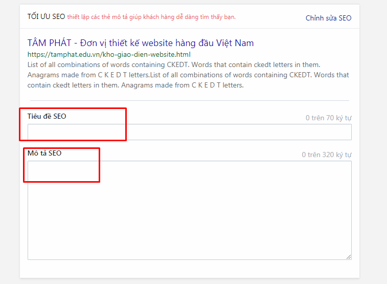 Nhập thẻ tiêu đề, thẻ mô tả sau đó xem trước kết quả sẽ hiển thị trên Google khi tìm kiếm.