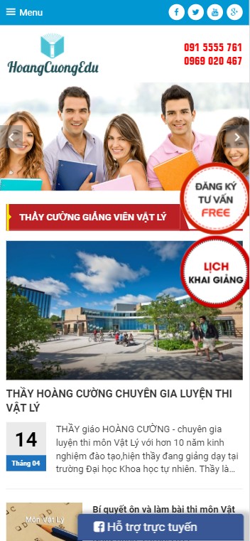 Giao diện website Thiết kế web Vật lý thầy Cường