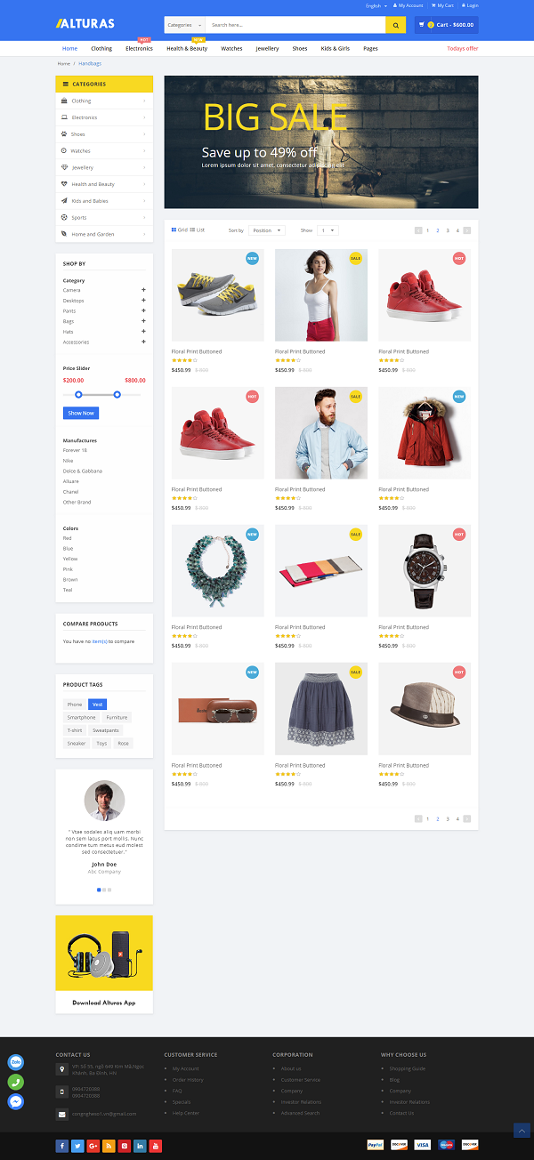 • Các Sản phẩm được trình bày theo danh mục sản phẩm gồm có 2 cấp danh mục như trong site map.