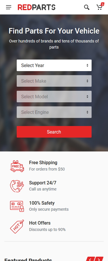 RedParts — Auto Parts HTML Template is a responsive template with a unique Spaceship header layout designed specifically for your auto parts store. You can also use it as an electronics store, sports goods, tools store, etc.