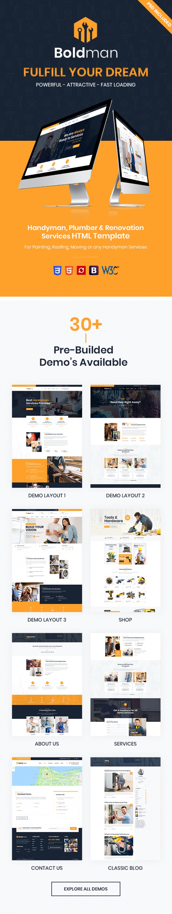 The Boldman template coded with beautiful and clean codes! Some powerful HTML files 100% valid W3 web standards.