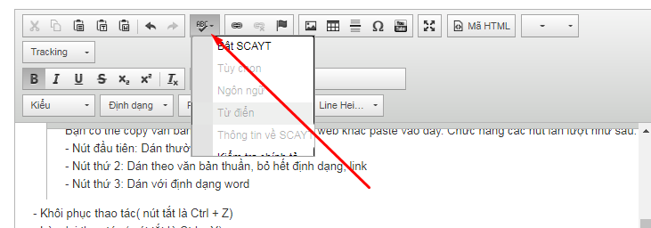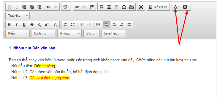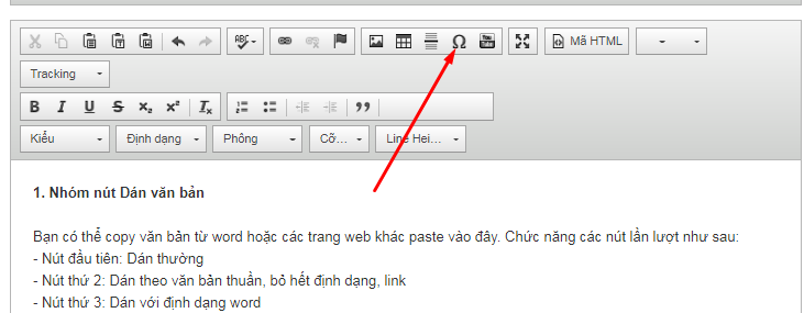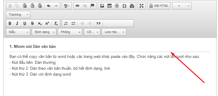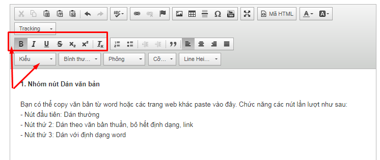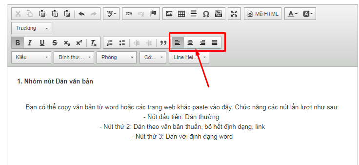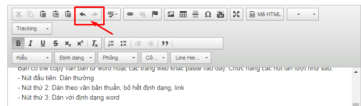 Bạn có thể copy văn bản từ word hoặc các trang web khác paste vào đây. Chức năng các nút lần lượt như sau: