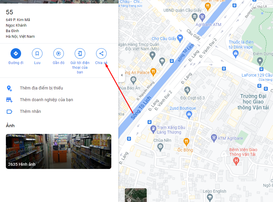 Chọn "nhúng bản đồ" => Sao chép HTML