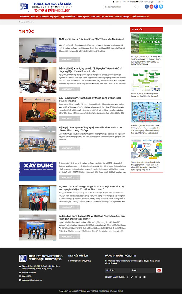 Giao diện website fee.nuce.edu.vn