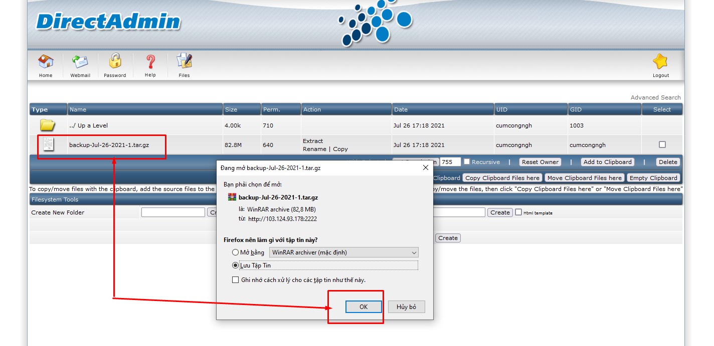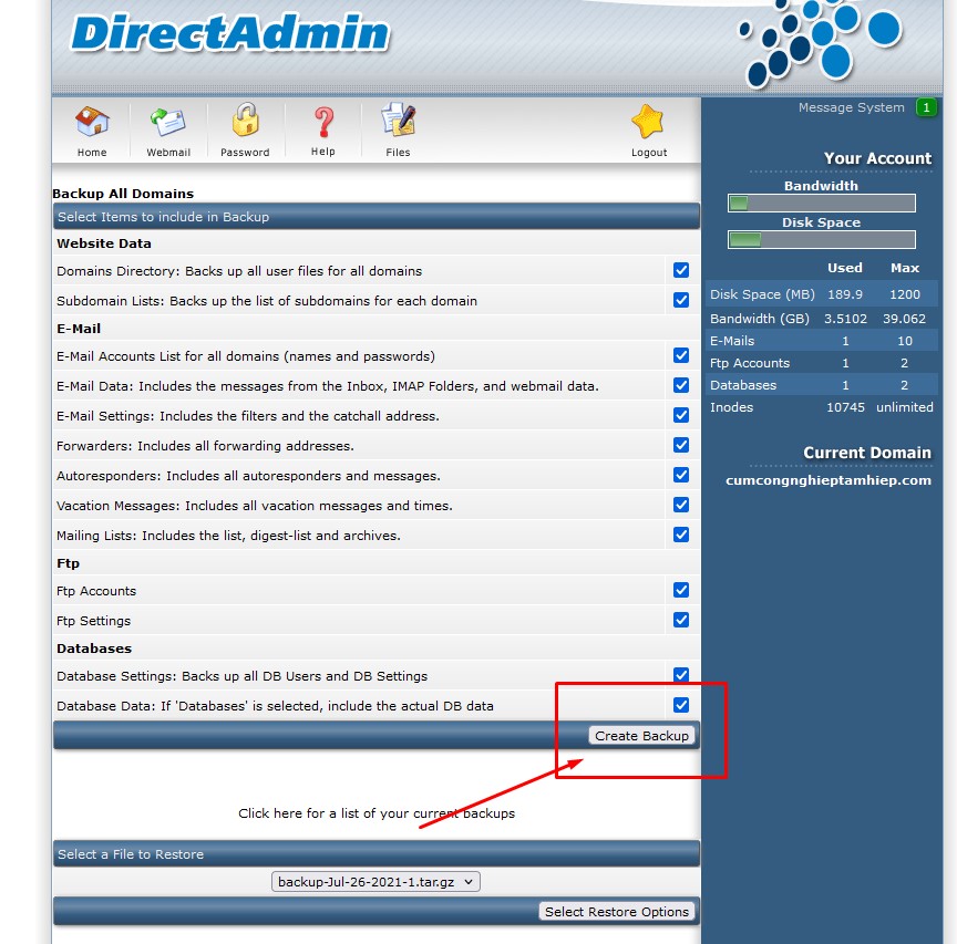 Chờ kết quả dữ liệu backup : khoảng 30 phút