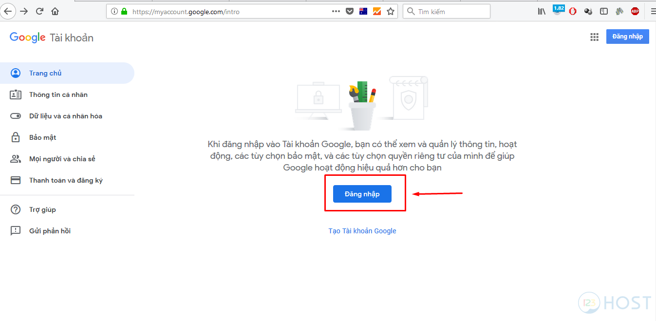 Bước 1: Truy cập link https://myaccount.google.com/intro và đăng nhập email gmail.