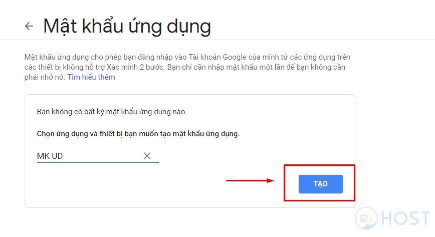 Bước 3: Tạo mật khẩu ứng dụng cho gmail