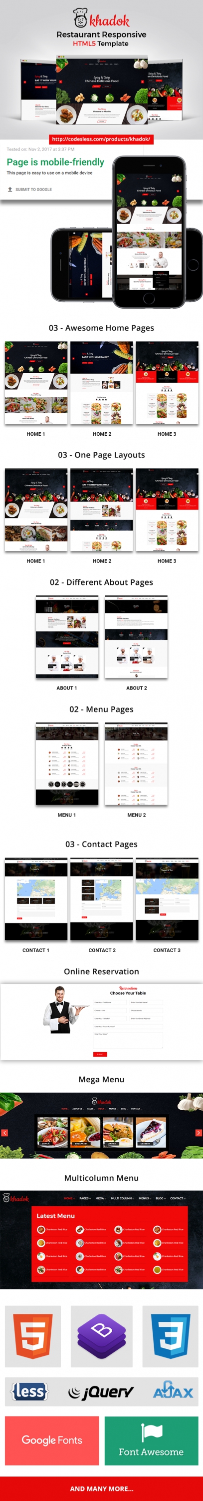 Khadok – Restaurant Responsive HTML5 Template is a clean, modern and minimalist responsive html Template. This HTML template is suitable for any restaurant, cafe or bar website. And this is a responsive template so it is fit nicely on every devices (Desktop, iPhone, iPad, Android etc.).