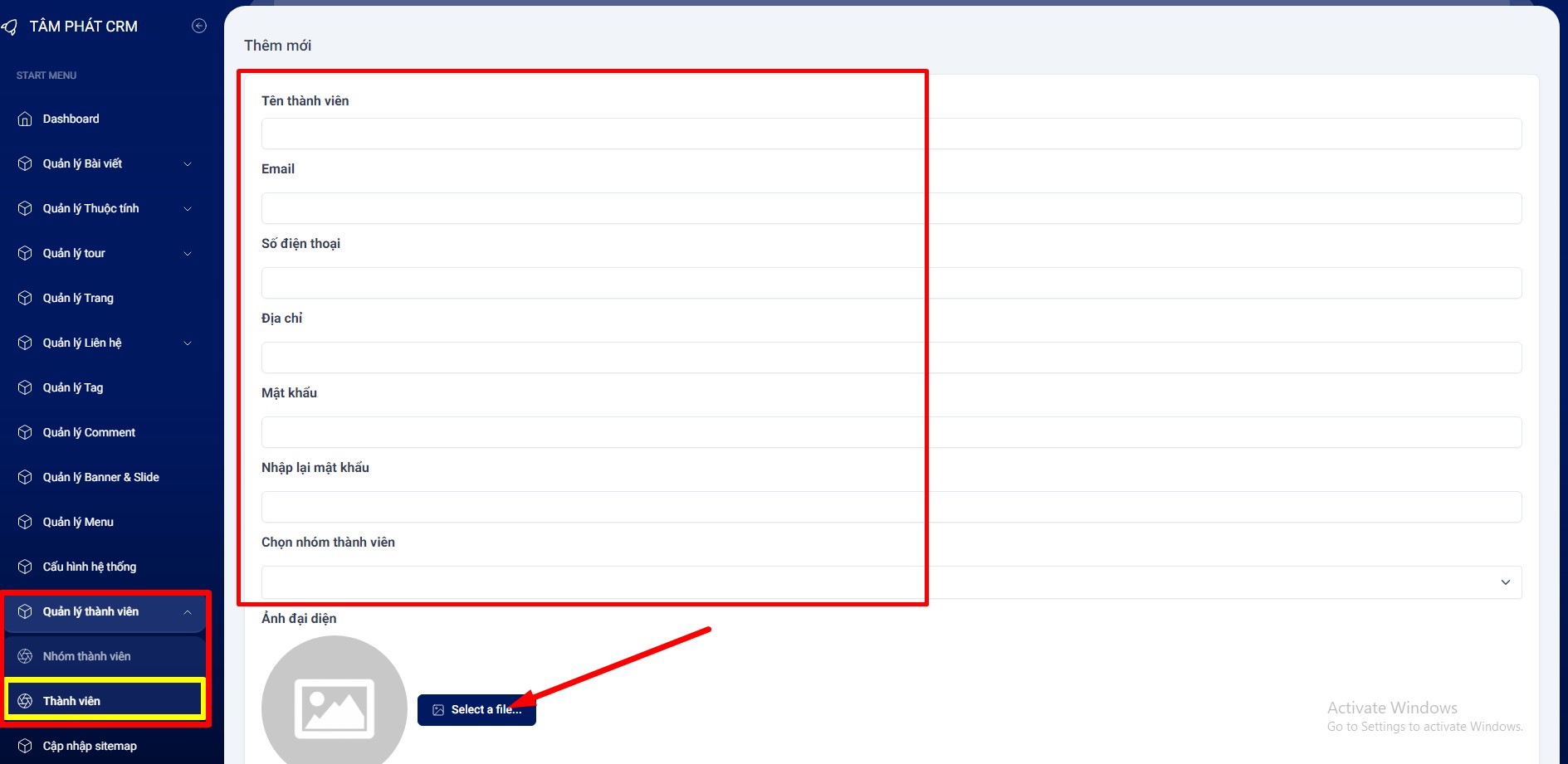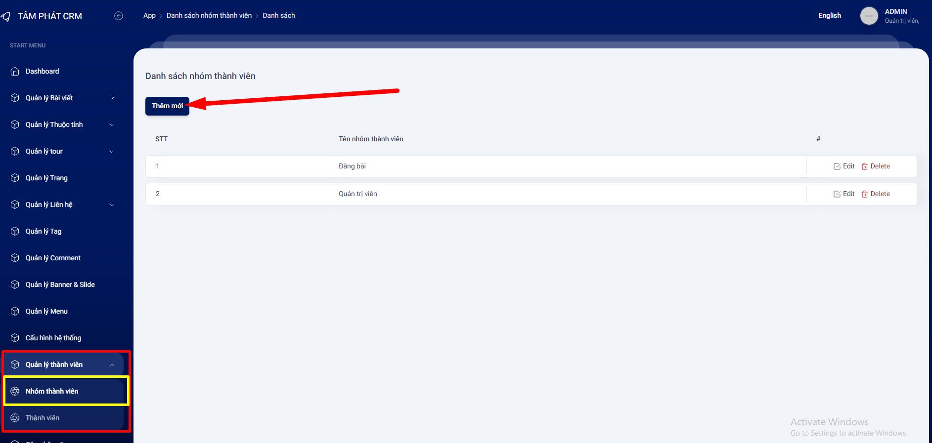 Để thêm mới 1 nhóm thành viên, hãy hoàn tất các bước sau:
