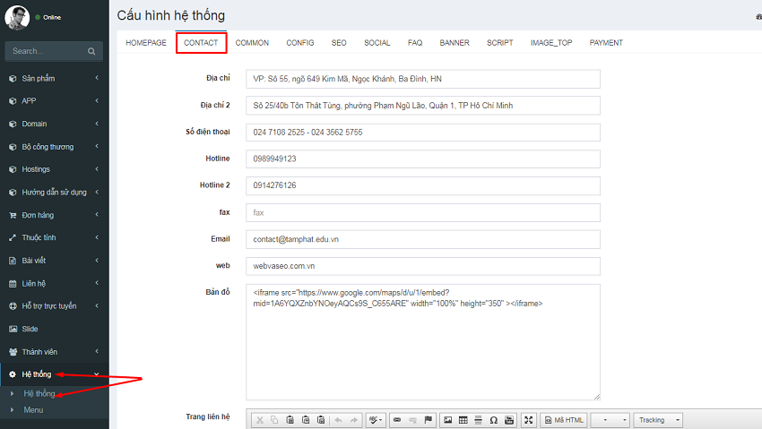 Khi truy cập trang quản trị website, bạn sẽ thấy phần thông tin liên lạc ở phần chân trang và trang Liên hệ. Trong bài viết này, Tâm Phát sẽ hướng dẫn bạn các thao tác thay đổi Thông tin chung trên website