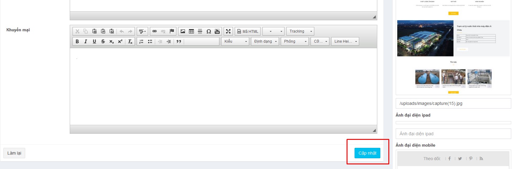 Bạn có thể thêm hoặc cập nhật thông tin về sản phẩm như giá, hình ảnh, mô tả sản phẩm từ hệ quản trị Web.