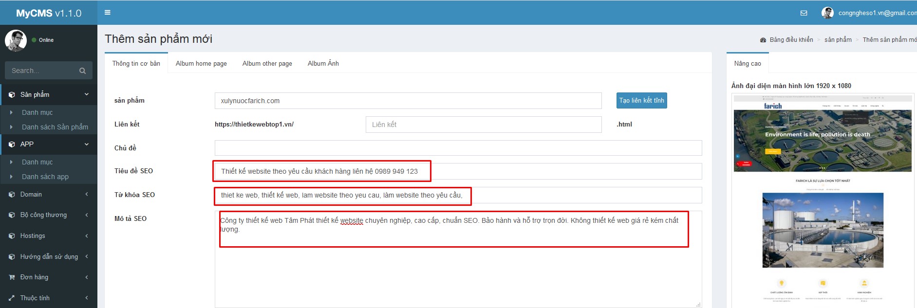Nhập thẻ tiêu đề, từ khóa, mô tả SEO và chỉnh sửa đường dẫn