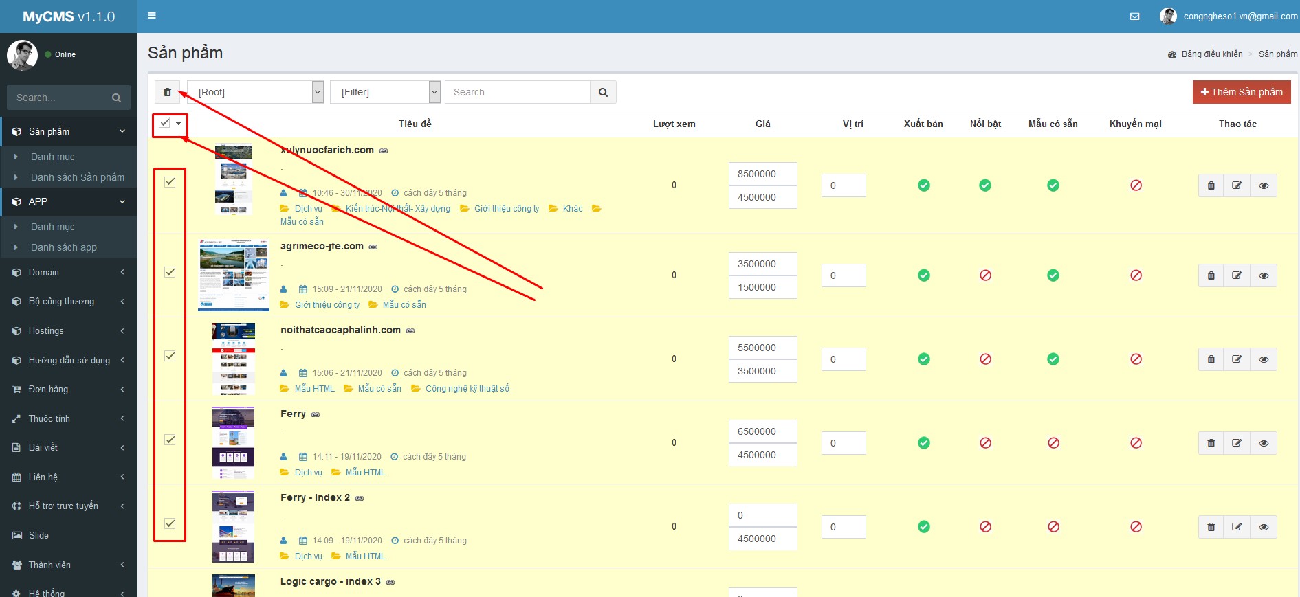 2. Sao chép sản phẩm ( chỉ có ở phiên bản web mới)