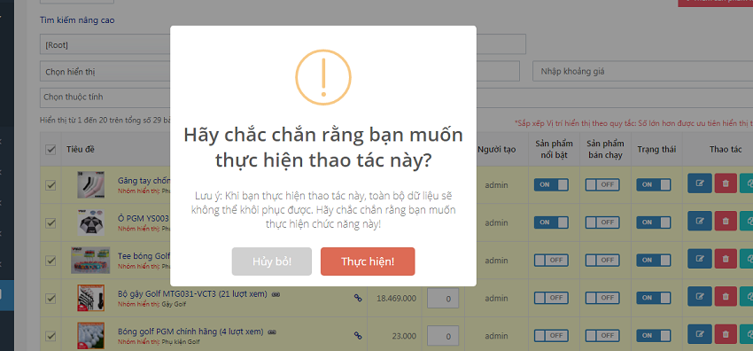 xóa nhiều sản phẩm trong cùng 1 thời điểm.